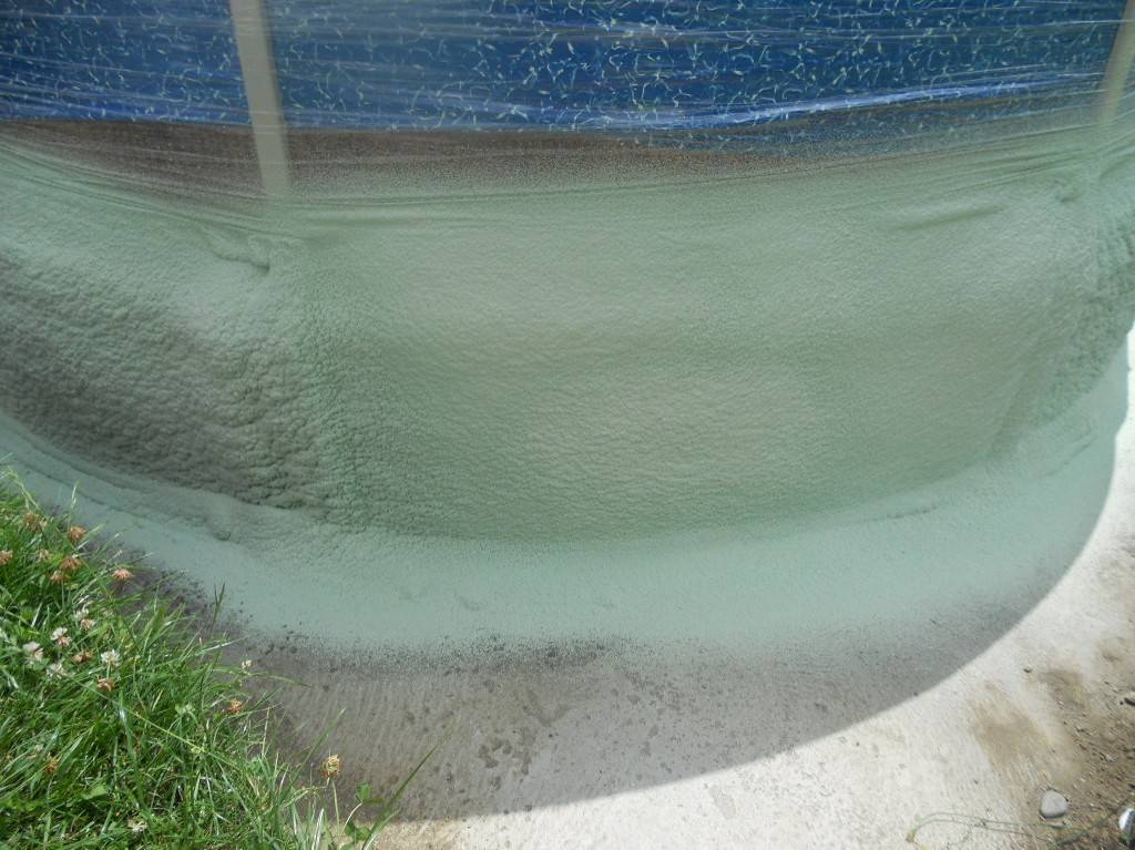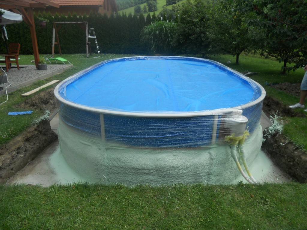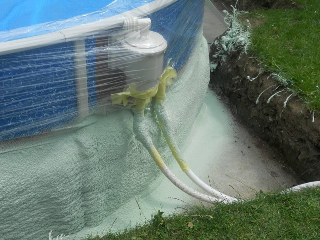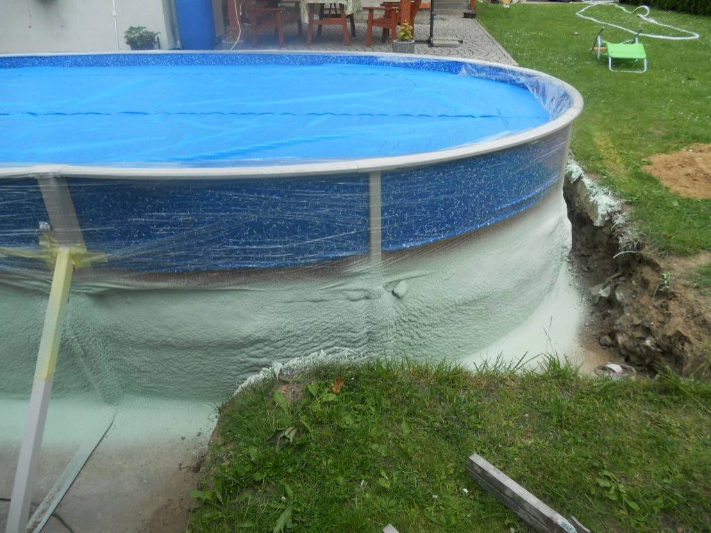 Tepelná izolace bazénu Česká VesTepelná izolace spodní části bazénu tvrdou izolační pěnou. Fotografie